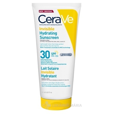 Hydratačné opaľovacie mlieko s ochranným faktorom SPF 30. Obsahuje 3 esenciálne ceramidy, ktoré pomáhajú obnoviť kožnú bariéru.