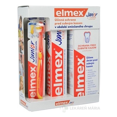 • elmex® Junior s aminfluoridom zubná pasta – poskytuje zubom ideálnu ochranu pred zubným kazom, má príjemnú chuť, ktorú deti akceptujú, motivuje k pravidelnej dentálnej hygiene.