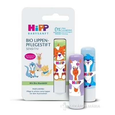 Balzam na pery s kvalitnými BIO olejmi a s prírodným včelím voskom. Bol vyvinutý špeciálne pre potreby detských pier. Jemne sa o ne stará a chráni pred vysúšaním. Nelepí, neobsahuje parfumy ani farbivá. Vhodné pre deti od 1 roku. Dizajn v troch zvieracích variantoch.