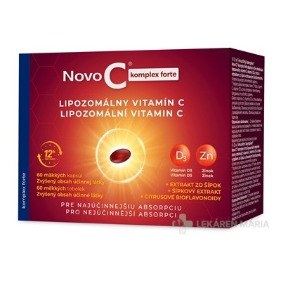 Novo C komplex forte LIPOZOMÁLNY VITAMÍN C kapsule s vitamínom D3 zinkom extraktom zo šípok a citrusovými bioflavonoidmi 60 ks