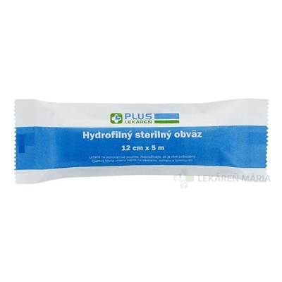 PLUS LEKÁREŇ Hydrofilný sterilný obväz 12 cm x 5 m, 1 ks