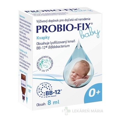 Výživový doplnok s obsahom baktérií mliečneho kvasenia (Bifidobacterium BB-12® – 1 miliarda CFU v 6 kvapkách). Výrobok je vhodný pre dojčatá staršie ako 2 dni. Viac na adc.sk