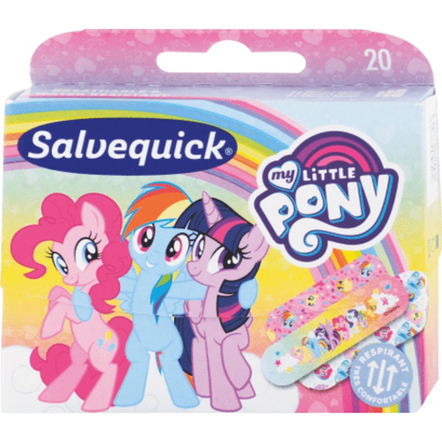 Detské náplasti Salvequick My Little Pony sú urcené na ošetrenie drobných zranení a raniek, ktoré by nemali navlhnút. Sú odolné proti vode, preto sú vhodné na umývanie, sprchovanie aj kúpanie. Navyše, hravý dizajn motívu rozprávky My Little Pony Salvequick vaše deti urcite rozveselí a rýchlo zabudnú na poranenie. Ideálne do dovolenkovej výbavy pre prípadné poranenie.