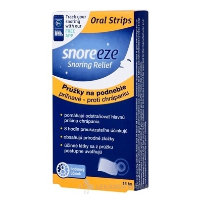 Prúžky na podnebie Snoreeze pomáhajú odstraňovať hlavnú príčinu chrápania. Dvojitý účinok s oneskoreným uvoľňovaním lubrikuje mäkké tkanivá v zadnej časti hrdla a zmierňuje chrápanie až na 8 hodín. Prúžky majú osviežujúcu mätovú príchuť a ihneď sa rozpúšťajú pre okamžitý účinok. Viac na adc.sk
