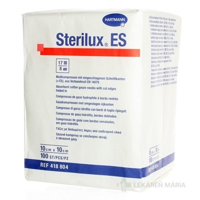 STERILUX ES kompres nesterilný so založenými okrajmi 17 vlákien 8 vrstiev (10cmx10cm) 1×100 ks