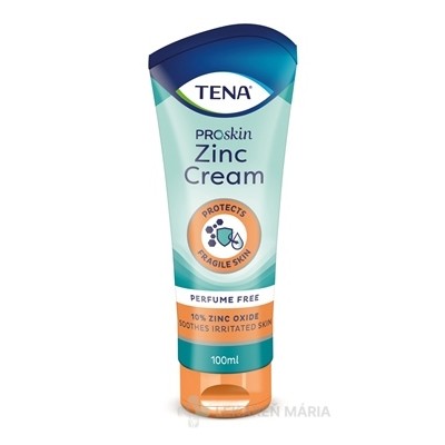 Zinková masť TENA Zinc Cream s obsahom oxidu zinočnatého (koncentrácia 10 %) a vitamínu E je určená na ochranu podráždenej a citlivej pokožky. Jemne sa rozotiera a odstraňuje bez drhnutia.