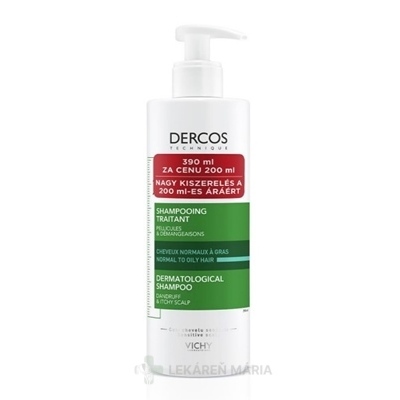VICHY DERCOS ANTI-DANDRUFF DS šampón proti lupinám, normálne až mastné vlasy (390 ml za cenu 200 ml) (inov. 2021) 1×390 ml