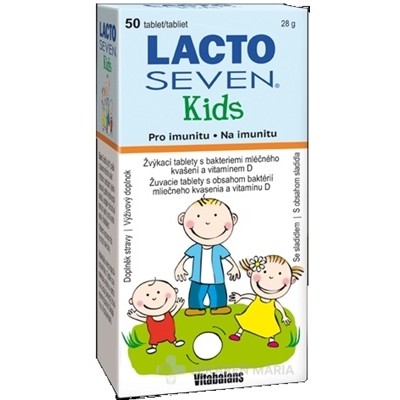 Žuvacie tablety s obsahom 7 kmeňov baktérií mliečneho kvasenia a vitamínu D pre deti a najmenších s jahodovo malinovou príchuťou. S obsahom sladila (xylitol).