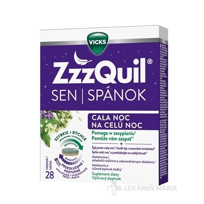 Tablety s melatonínom, vitamínom B6 a bylinnými zložkami valeriány a medovky. Melatonín a bylinné zložky sú postupne uvoľňované 8 hodín počas noci. Od 18 rokov.